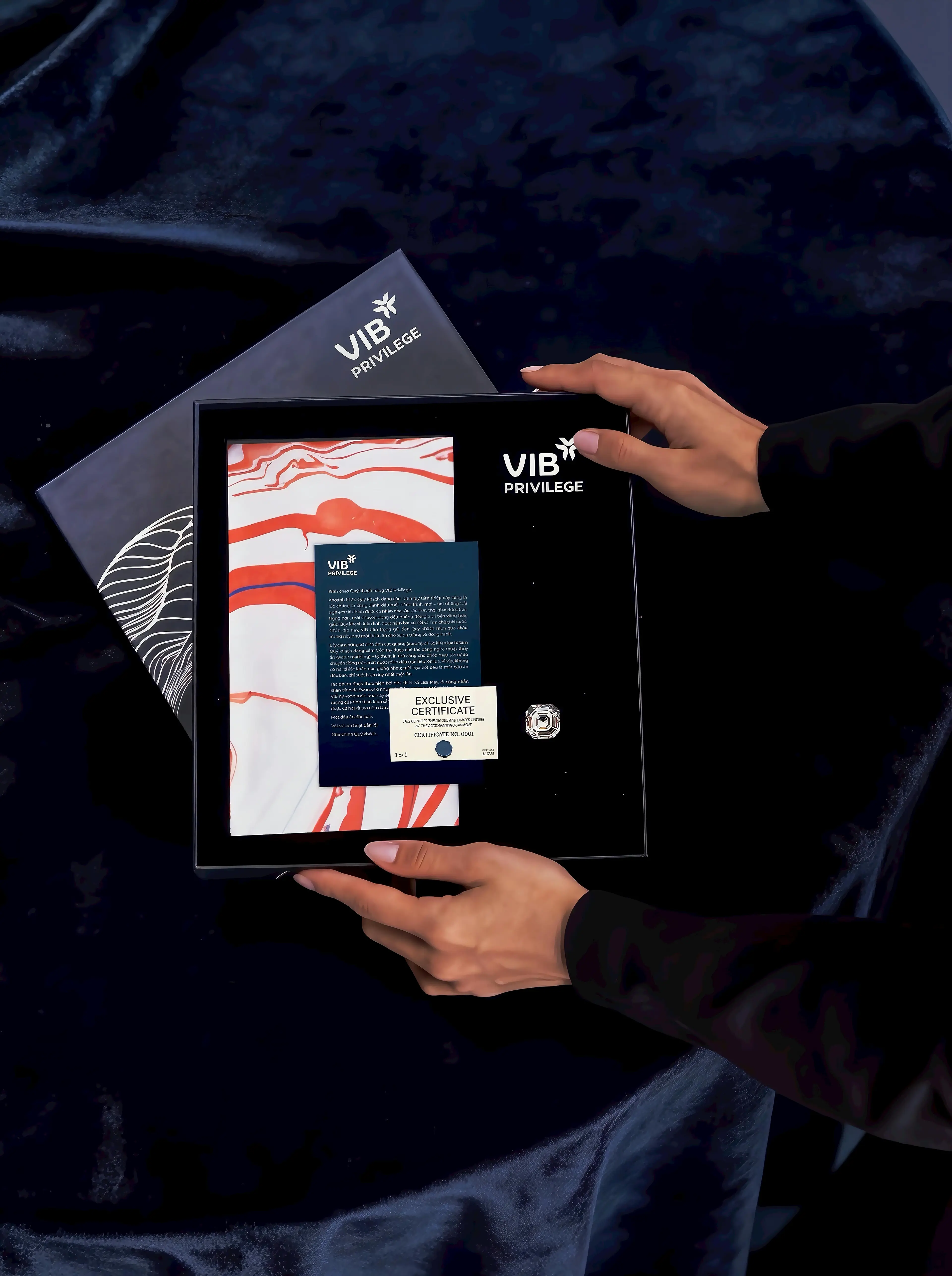 Bộ quà tặng nghệ thuật thủy ấn dành cho khách hàng VIB Privilege Banking là cách Aurora được cụ thể hóa thành thứ có thể sở hữu, cầm, chạm và cảm nhận.